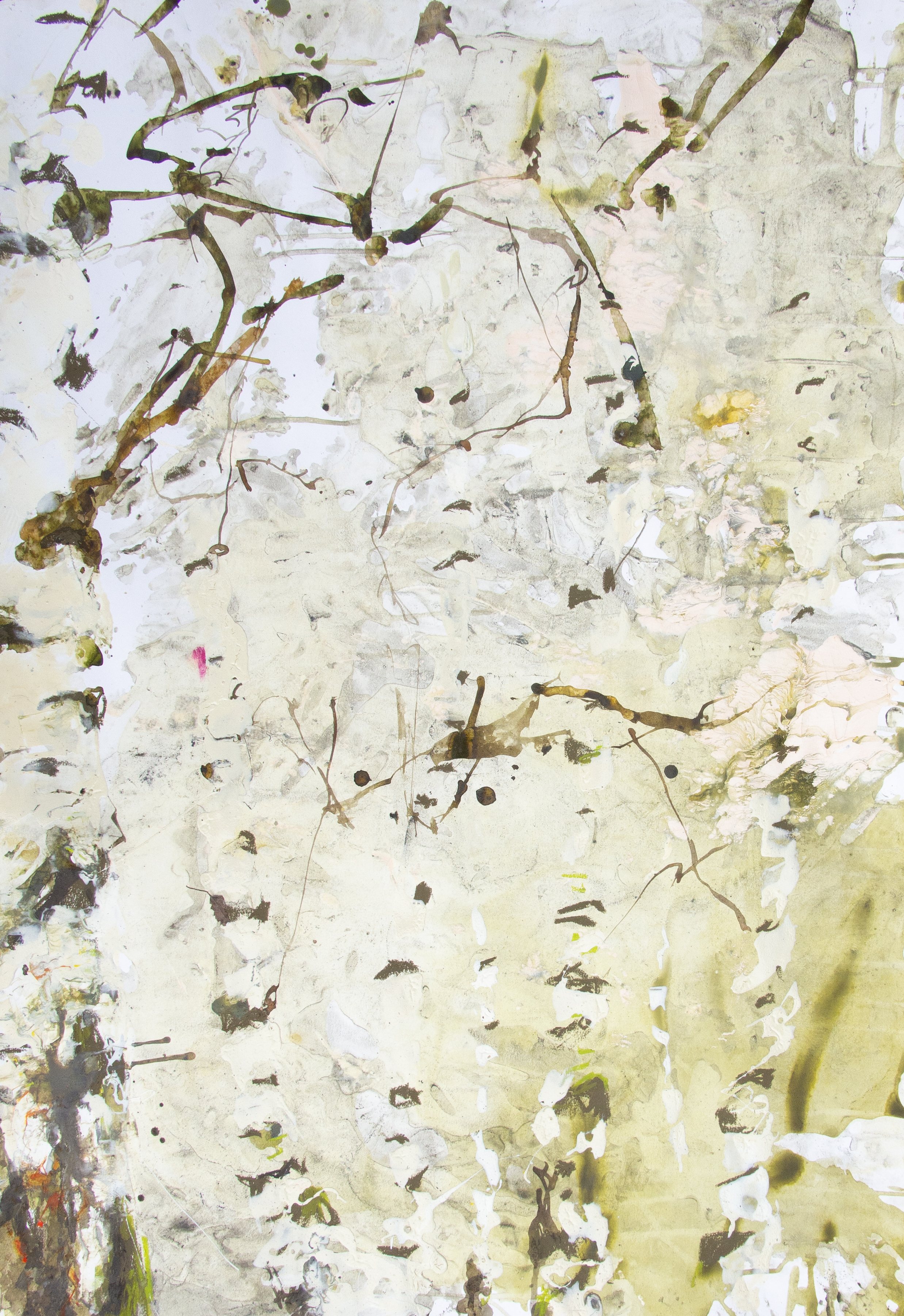 malba "Břízy II", kombinace papír